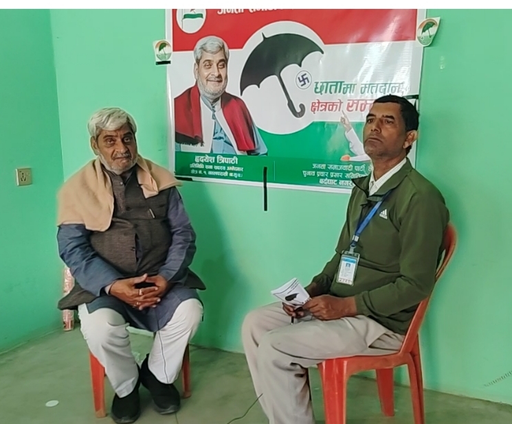 जनता समाजवादी पार्टी, नेपाल (जसपा) का तर्फबाट उम्मेदवारी दिनुभएका पूर्वमन्त्री त्रिपाठीले आफूले गरेको विकास निर्माणका कामको अनावश्यक प्रचार नगर्ने तर परिणाममार्फत जनतालाई देखाउने शैली अपनाउँदै आएको बताउनुभयो। “मैले गरेँ भनेर भन्नु मेरो स्वभाव होइन, काम गर्नु नै मेरो जिम्मेवारी हो,” उहाँले भन्नुभयो। उक्त कुरा उहाँले जनता अनलाइनसँगको कुराकानीका क्रममा बताउनुभएको हो।