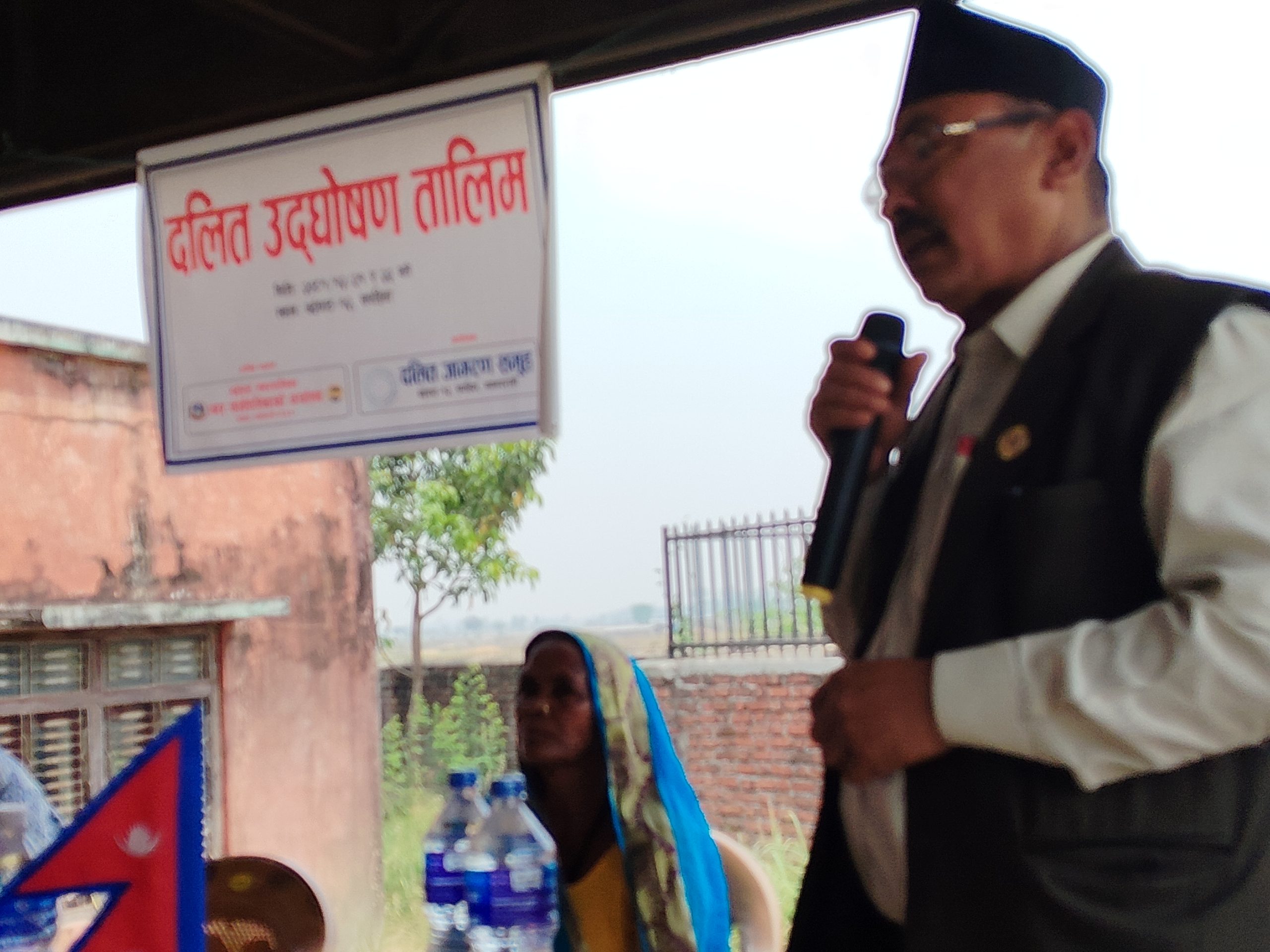 यसैगरी, विशेष अतिथि बर्दघाट नगर उपप्रमुख रुद्र प्रकाश उपाध्यायले दलित समुदायले संविधानले दिएको अधिकारको प्रभावकारी उपयोग गर्नुपर्नेमा जोड दिनुभयो। जातीय भेदभाव अन्त्य गर्न सामूहिक प्रयास अपरिहार्य रहेको उहाँको भनाइ थियो।