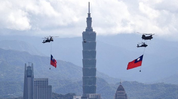 ताइपेई नजिकै टापुको राष्ट्रिय दिवसको उत्सवको लागि अभ्यास गर्दै। तस्बिर: एजेन्सी