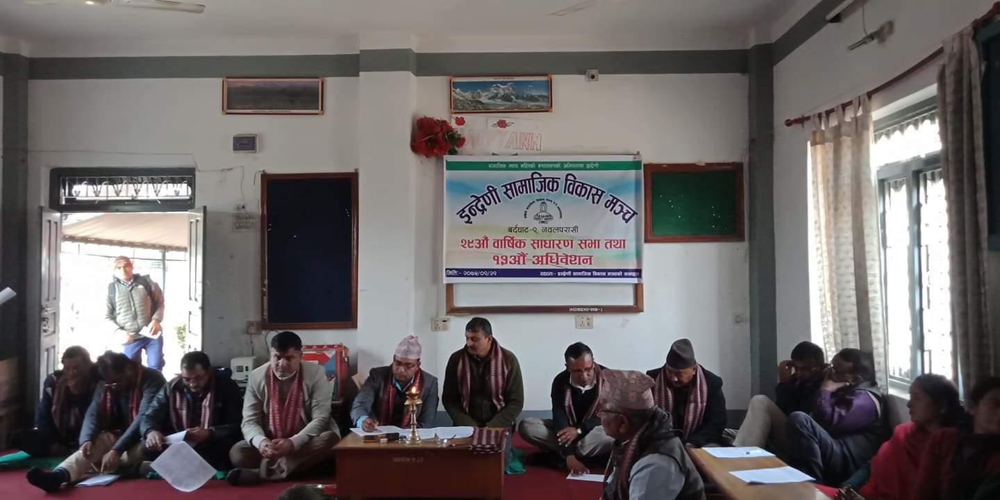 पश्चिम नवलपरासी बर्दघाट नगरपालिका वार्ड न ९ भुताहामा रहेको इन्द्रेणी सामाजिक बिकास मञ्चको २९ औ बार्षिक साधारणसभा तथा १२ औ अधिवेशन कार्यक्रममा संस्थाको कार्यसमिति चयनका लागि निर्वाचन भएको थियो । निर्वाचनमा दुई टिमको प्रतिस्पर्धा भएको थियोे । एक टिमको अगुवाई बद्री प्रसाद सुवेदीले गर्नु भएको थियो भने अर्को टिमको अगुवाई लोमा वाग्लेले गर्नु भएको थियोे । बद्री प्रसाद सुबेदीको टिममा उपाध्यक्षमा केशव घिमिरे,सचीवमा होम राज कुवर,कोषाध्यक्षमा पुन्यवती मिश्र र सदस्यहरुमा बिमल चन्द्र घिमिरे,चेतनारायाण भण्डारी,रिता सुवेदी,प्रतिभा गुप्ता र योगेन्द्र भट्टराई रहेका थिए । भने लोमा वाग्लेको अगुवाईमा उपाध्यक्षमा कर्दम क्षेत्री,सचिबमा नारायण गिरि,कोषाध्यक्षमा कोपिला श्रेष्ठ र सदस्यहरुमा कमल पराजुली,हेम बहादुर क्षेत्री,राजेन्द्र प्रसाद पौडेल,बिमल चन्द्र घिमिरे र पुर्णमान श्रेष्ठ रहेका थिए । सुवेदी र वाग्लेको टिमलाई एक आपसमा मिलेर सहमति अनुसार संस्थाको कार्यसमिति चयन गर्न भनेर सहमतिका लागी बैठक बसाल्दा एक आपसमा सहमति जुट्न नसकेपछि दुबै टिम निर्वाचन प्रक्रिया बाट अगाडी बढ्ने भनी निर्वाचन भाग लिएका थिए । निर्वाचन पश्चात सुबेदीको टिमबाट उपाध्यक्ष पद बाहेक सम्पुर्ण पदमा सुबेदीले हात पारेका छ्न । भने वाग्लेको टिमबाट उपाध्यक्ष पदमा कर्दम बहादुर क्षेत्री मात्र बिजयी भएका छन । मत परिणाम अनुसार अध्यक्ष पदमा सुबेदीको ६० मत र वाग्लेको ४१ मत,उपाध्यक्ष पदमा क्षेत्रीको ५३ मत र घिमिरेको ४८ मत,सचिब पदमा कुवरको ७१ मत र गिरिको ३१ मत,कोषाध्यक्ष पदमा मिश्रको ५२ मत श्रेष्ठको ४४ मत रहेको छ । भने सदस्यहरुमा सम्पुर्ण सुवेदीको प्यानल बिजयी भएका छन र सदस्यहरुको मत परिणाम बिमल चन्द्र घिमिरेले ६५ मत,रिता सुवेदीले ६२ मत,चेत नारायण भण्डारीले ५९ मत,प्रतिभा गुप्ताले ५४ मत र योगेन्द्र भट्टराईले ५२ मत प्राप्त गरि बिजयी भएको र कार्यसमितिको सहसचिव पदमा हरि प्रसाद सापकोटा निर्बिरोध निर्वाचित भएको निर्वाचन समितिका संयोजक राम बिलास पौडेलले जानकारी दिनु भयो । इन्द्रेणी सामाजिक बिकास मञ्च बर्दघाट नगरपालिका वार्ड न ९ भुताहामा कुल १ सय १६ मत रहेको मध्येमा कुल १ सय ३ मत मात्र खसेको र २ मत बदर भएको निर्वाचन समितिका संयोजक पौडेलले बताउनु भयो । साथै बालकृष्ण लम्सालको संयोजक्तामा ३ सदस्यीय लेखा समिति पनि निर्बिरोध चयन भएको छ । जसको सदस्यहरुमा ज्ञान हरि भट्टराई र सुशीला उपाध्याय रहनु भएको छ । सो २९ औ बार्षिक साधारणसभा तथा १२ औ अधिवेशन कार्यक्रममा भुताहा गाउँको जनजाति समुदायबाट एस इ इ परिक्षा र कक्षा १२ मा उत्कृष्ट हुने १ छात्रा र १ छात्र गरि २ विद्यार्थीहरुलाई सम्मान गर्नुको साथै संस