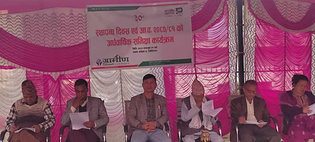 यसै गरी उक्त संस्थाले ३०औं स्थापना दिवसकै अवसर पारी अर्धबार्षिक समिक्षा समेत गरेको थियो । २०५१ सालमा स्थापना भएको ग्रामीण वाल्मीकि बचत तथा ऋण सहकारी सस्था नमुना सहकारी संस्थाको पहिचान बनाएको उक्त संस्थामा हाल १२ हजार ३ सय ३३ जनाशेयर सदस्य रहेको सस्थाका व्यवस्थापक अनन्त पाण्डेले जानकारी दिनुभयो । संस्थाले सदस्यहरुलाई बचत र ऋण सेवा बाहेक सामाजिक सुरक्षाका विभिन्न सेवाहरु समेत उपलब्ध गराउँदै आएको छ ।सस्थाका अध्यक्ष रबिन्द्र बिक्रम हमालको अध्यक्षता तथा सस्थाका ज्येष्ठ शेयर सदस्य होम नाथ उपाध्याय ढकालको प्रमुख आतिथ्यमा सम्पन्न कार्यक्रममा सस्थाका व्यवस्थापक अनन्त पाण्डेले आ.ब २०८० । ८१ को अर्ध वार्षिक प्रगति प्रतिवेदन प्रस्तुत गर्नु भएको थियो । सस्थाका उपाध्यक्ष लक्ष्मण प्रसाद ज्ञवालिको स्वागत मन्तव्य रहेको कार्यक्रमको सञ्चालन सचिव राधा ढकालले गर्नु भएको थियो ।