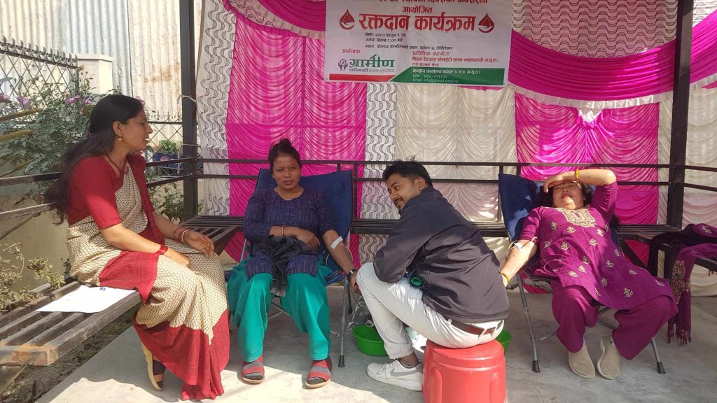 ग्रामिण साकोसको ३० औं स्थापना दिवसको अवसरमा ग्रामीण वाल्मिकी बचत तथा ऋण सहकारी सस्था लि. केन्द्रिय कार्यालय बर्दघाट ७ जिमिरेभार पश्चिम नवलपरासीको आयोजना तथा नेपाल रेडक्रस सोसाइटी रक्त सन्चार सेवा केन्द्र पश्चिम नवलपरासीको प्राबिधिक सहयोगमा मंगलवार ग्रामिण साकोसको प्राङ्गणमा रक्तदान कार्यक्रम सम्पन्न भएको छ । ग्रामिण साकोसको ३० औं स्थापना दिवसको अवसरमा सस्थाले आ.ब २०८० । ८१ को अर्धबार्षिक समिक्षा गर्ने कार्यक्रम रहेको र संस्थाले सदस्यहरुलाई बचत र ऋण सेवा बाहेक अन्य सामाजिक कार्यहरु गर्दै आएको हुदा, अस्पतालमा बसेका विरामीहरुलाई रगत अभाव नहोस भन्ने उद्देश्यले रक्तदान कार्यक्रमको आयोजना गरेको विजय ज्ञवालीले बताउनुभयो । रक्तदान कार्यकममा १७ जना पुरुष र ७ जना महिला समेत गरि २४ जनाले रक्तदान गर्नुभएको थियो ।