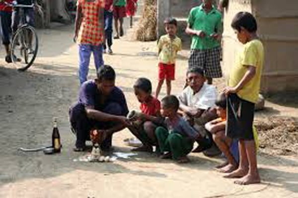 त्यस दिन बेलुका घरमूलीले घरछिमेकका सानासाना केटाकेटीहरुलाई जम्मा पारी घरको मूलट्ठार अगाडि आँगनमा बनेका रोटीका परिकारहरुको पुजापाठ गरी बाघचाल खेलकै जस्तो कोठाकोठी बनाएर त्यसको चारैकुना र बीचमा रोटीको थुप्रो थुप्रो लगाई बत्ती बालेर पानी र रक्सी चढाएर हारालुछ गर्न लगाउँछ । त्यसलाई “दिउलीबाती लुटोइ” भनिन्छ ।