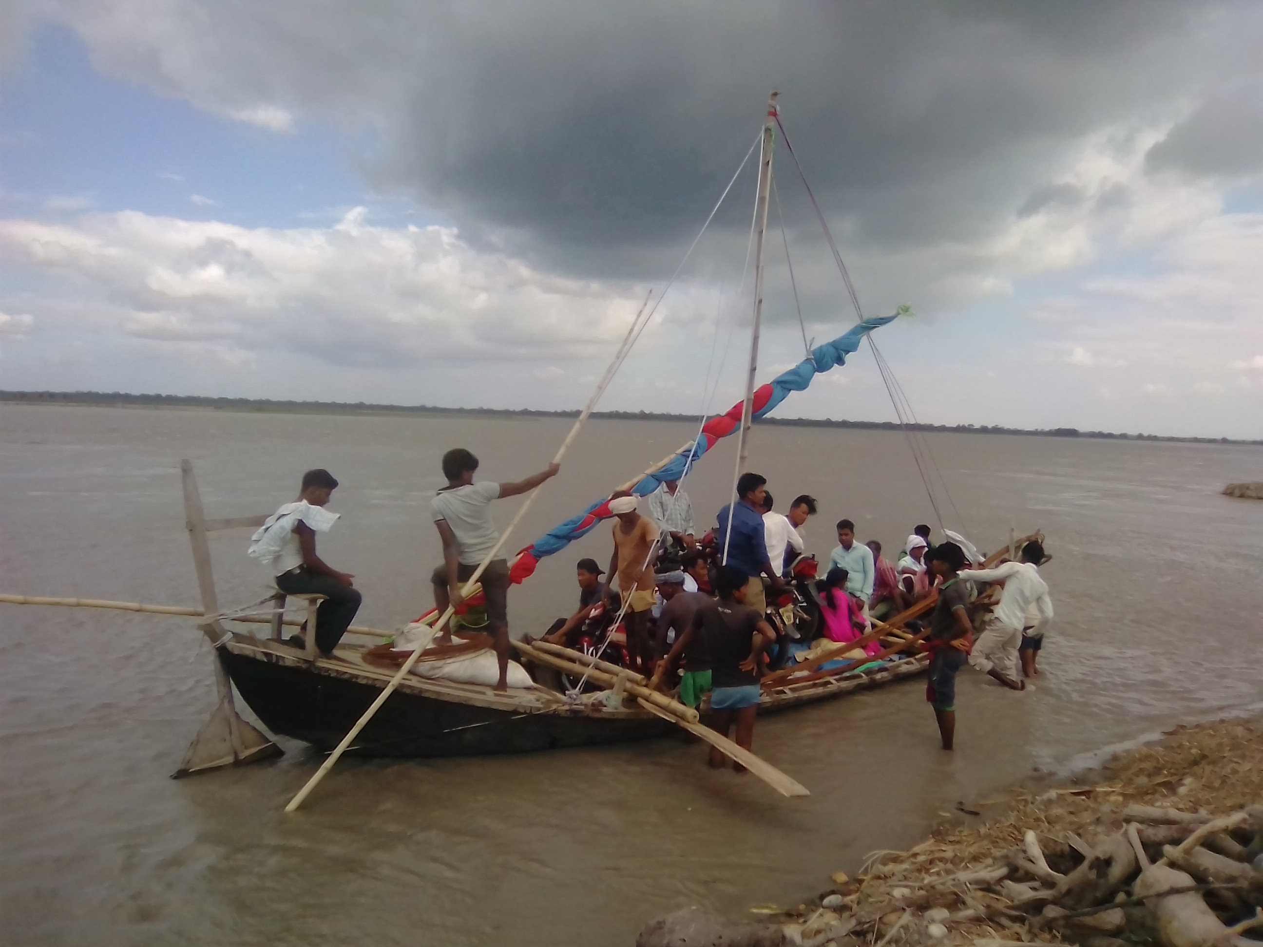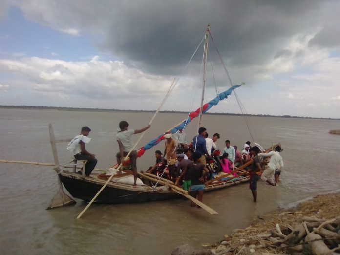 दैनिक उपभोग्य सामग्री खरिदका लागि डुङ्गाको जोखिमपूर्ण यात्रा ।