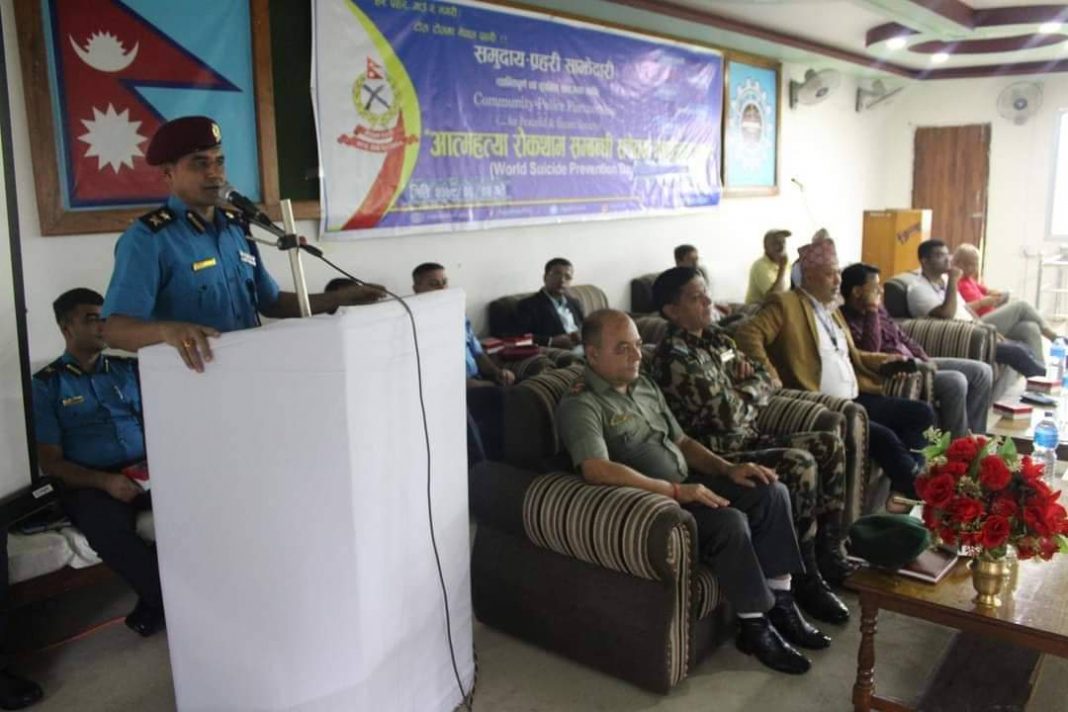 नेपाल प्रहरी कार्य योजना २०७९ अन्तर्गत “आत्महत्या न्यूनिकरण कार्यक्रम” अनुरुप देश भर बढ्दो रुपमा रहेको आत्महत्याको दरलाई न्यूनिकरण गर्न आम नागरिकलाई सुसुचित गराउने उद्धेश्यले सरोकारवाला निकायहरुको वृहत सहभागितामा संम्पन सचेतना कार्यक्रम बताएको छ ।