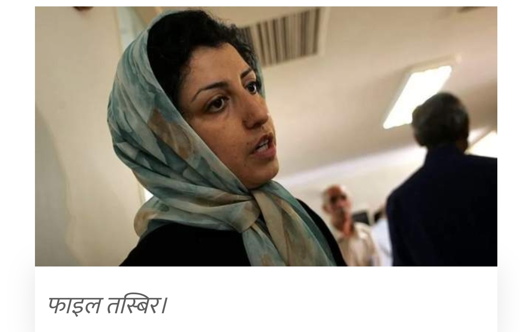 बीबीसी : यो वर्षको नोबेल शान्ति पुरस्कार इरानकी नर्गिस मोहम्मदीले पाएकी छिन्। महिलाविरुद्ध हुने दमनका विरुद्ध गरेको संघर्ष तथा सबैका लागि मानवाधिकार र स्वतन्त्रताका लागि गरेको पहलका लागि नर्वेको नोबेल शान्ति पुरस्कार समितिले उनलाई उक्त पुरस्कार प्रदान गर्ने निर्णय गरेको हो।