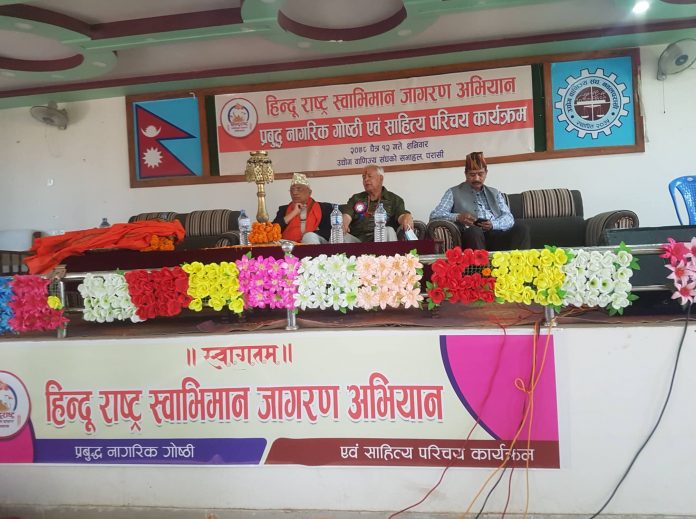 हिन्दु राष्ट्र स्वाभिमान जागरण अभियान प्रबुद्ध नागरिक गोष्ठि एवं साहित्यकार परिचय कार्यक्रम पश्चिम नवलपरासीको परासीमा शनिवार सम्पन्न भएको छ ।