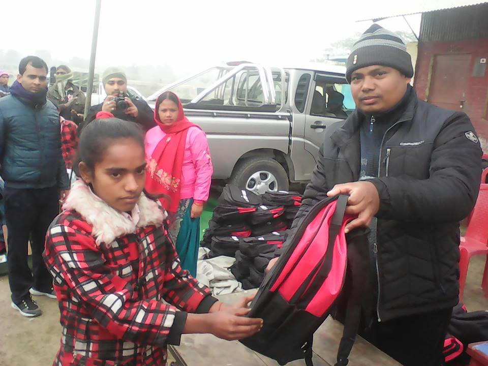 बाढीका कारण प्रभावित बालबालिकाहरुलाई पाेशाक, ब्याग लगायतका शैक्षिक सामाग्रीहरू भुजहवामा वितरण गरिएकाे छ ।