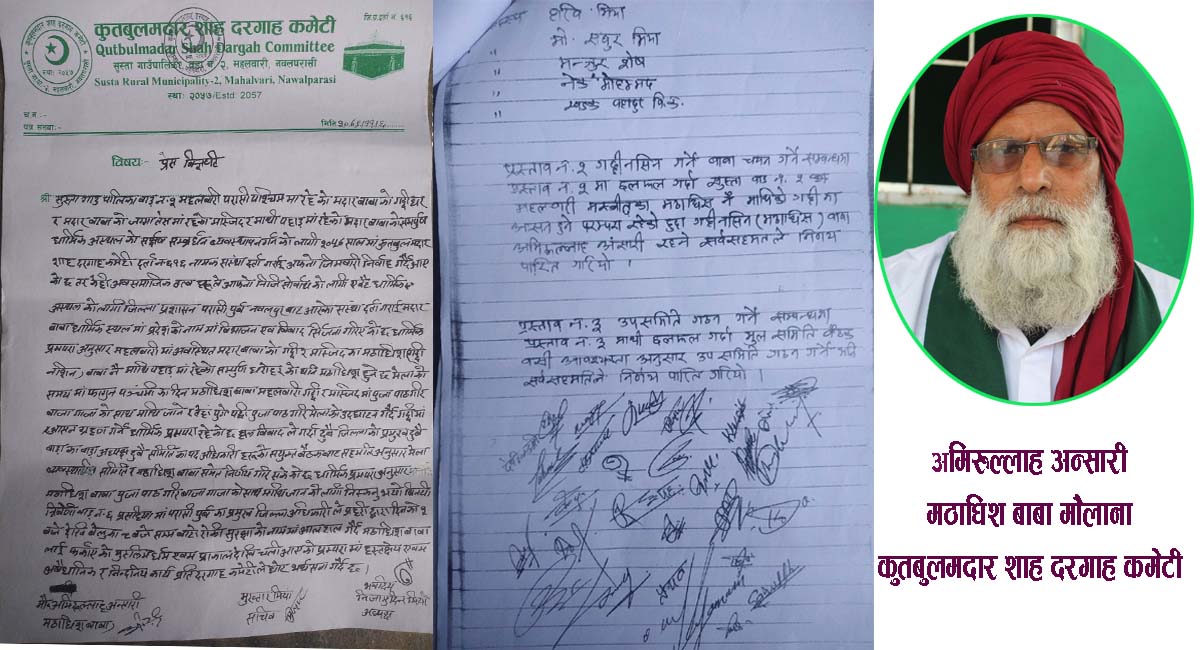 कुतबुलमदार शाह दरगाह कमेटीका अध्यक्ष निजामुद्धिन मियाँ, मुख्तर मियाँ र मठाधिश बाबा मौलाना अमिरुल्लाह अन्सारीले संयुक्तरुपमा हस्ताक्षरगरी जारी गरेको विज्ञप्तीमा दुबै प्रदेशका जनप्रतिनिधि, प्रहरी प्रशासन र प्रमुख जिल्ला अधिकारी सहितको बैठकले गरेको निर्णय विपरित मदारको डाँडामा रहेको समाधिस्थलमा मठाधिश राखीको भन्दै खेद ब्यक्त गरीएको छ ।