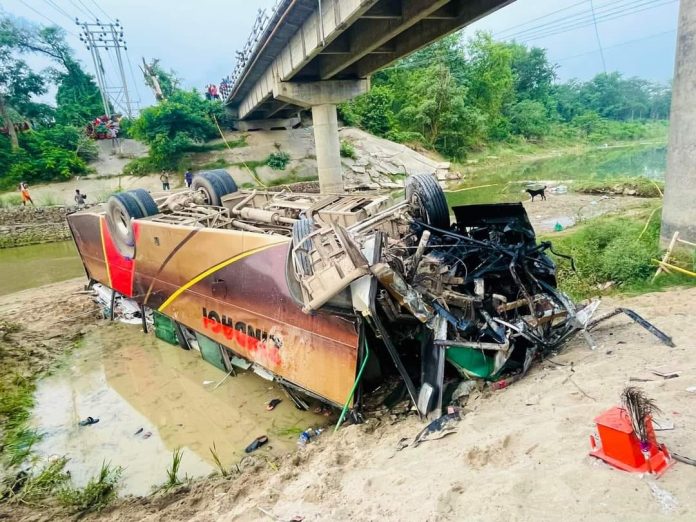 जनकपुरबाट भैरहवातर्फ जांदै गरेकाे बस राेहिणी नदीकाे पुलबाट तल नदीमा खसेकाे हाे ।