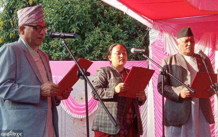 मुख्यमन्त्री पाण्डेसँगै नेपाली कांग्रेसका कृष्णलाल भँडेल, नेकपा (माओवादी केन्द्र) का कुमारी मोक्तान र नेकपा (एस) कृष्णप्रसाद खनालले मन्त्री पदको शपथ लिएका छन् । भँडेललाई भौतिक पूर्वाधार, मोक्तान सामाजिक विकास र खनाललाई आन्तरिक मामिला तथा कानुन मन्त्रालयको जिम्मेवारी दिइएको छ ।