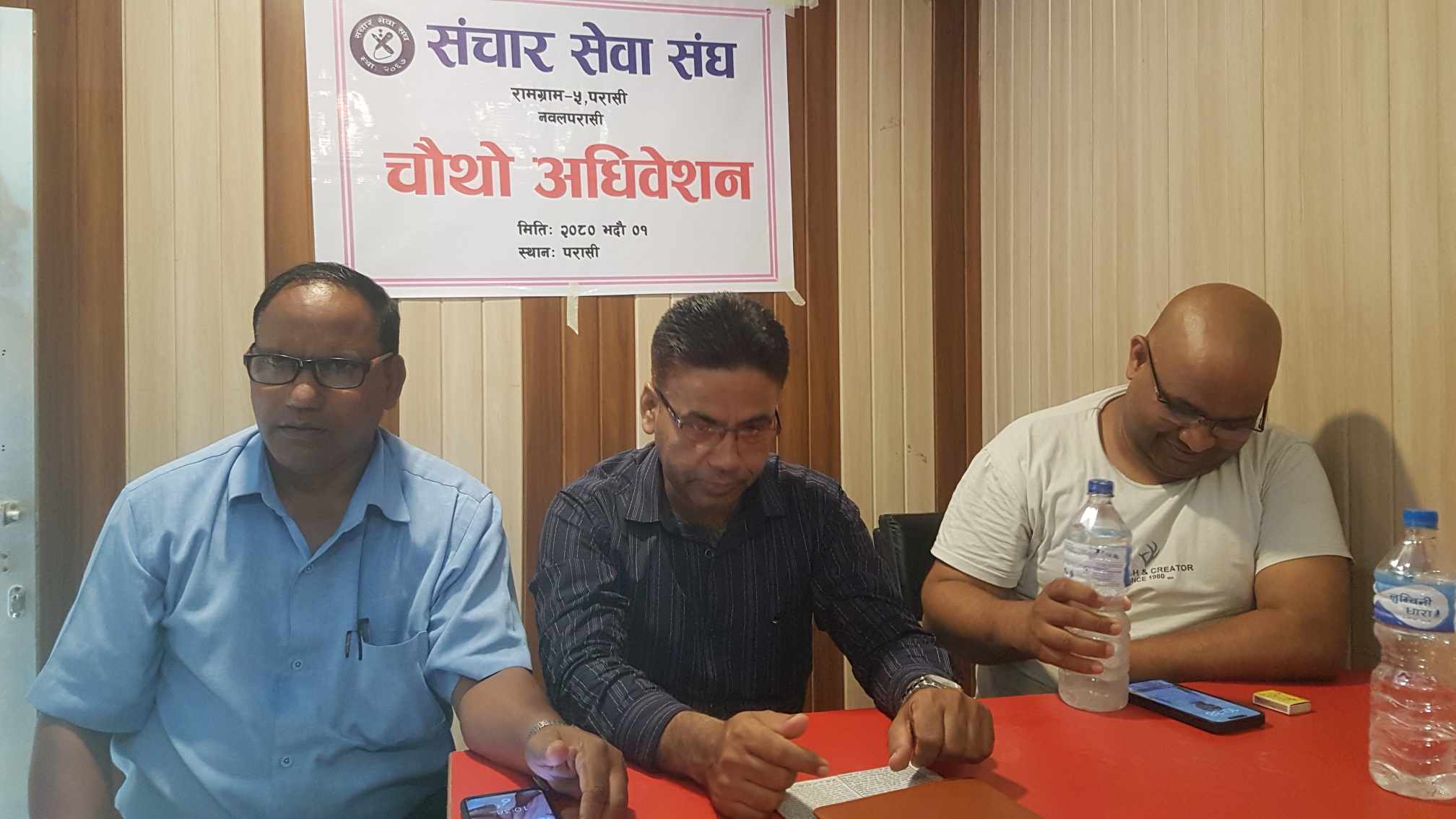 पप्पु रेग्मी, बर्दघाट। सञ्चार सेवा संघ पश्चिम नवलपरासीको चौंथो अधिवेशन तथा साधारण सभा शुक्रवार परासीमा सम्पन्न भएको छ ।