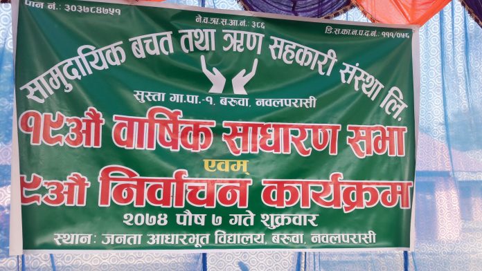 जिल्लाकाे सुस्ता गाउँपालिका वार्ड न १ बरुवामा सञ्चालनमा रहेकाे सामुदायिक बचत तथा ऋण सहकारी संस्था लिमिटेडको १९औ बार्षिक साधारण सभा तथा ९औं निर्वाचन कार्यक्रम सम्पन्न भएको छ ।