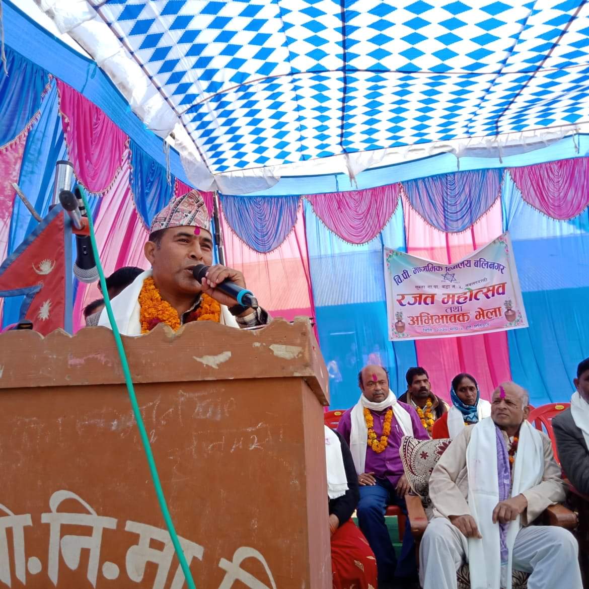 पश्चिम नवलपरासी सुस्ता गाउँपालिकामा रहेको सामुदायिक बिद्यालयहरुलाई नमुना बनाउने सुस्ता गाउँपालिकाका अध्यक्ष राम प्रसाद पाण्डेले बताउनु भएको छ । सुस्ता गाउँपालिकाको वार्ड न ५ पक्लिहवा स्थित बलिनगरमा रहेको श्री बि पि माध्यमिक बिद्यालयको रजत जयन्ती समारोह कार्यक्रममा बोल्दै अध्यक्ष पाण्डेले यस्तो बताउनु भएको हो । सुस्ता गाउँपालिका अध्यक्ष पाण्डेले आफ्नो गाउँपालिका भित्र रहेका सम्पुर्ण सामुदायिक बिद्यालयहरुलाई नमुना बनाउने भन्दै शिक्षा क्षेत्रमा गाउँपालिकाले २०% प्रतिशत लगानी गरेको उहाँले बताउनु भयो । साथै अध्यक्ष पाण्डेले सुस्ता गाउँपालिका भित्र रहेका केही बिद्यालयहरुमा दरबन्दी नभएको कारणले ती बिद्यालयहरु धरासायी बन्दै गएको अवस्थामा सो बिद्यालयहरुलाई धरासायी हुनबाट जोगाउनको लागि गाउँपालिकाको स्रोतबाट २० जना शिक्षकहरु नियुक्ति गरि सम्बन्धित बिद्यालयहरुमा ती शिक्षकहरुलाई अध्यापन गराउन पठाई सकेको पनि जानकारी दिनु भयो । रजत जयन्ती समारोहमा बोल्दै अध्यक्ष पाण्डेले शिक्षाको मन्दिर जस्तो बिद्यालयमा राजनीतिक गन्ध घुसाउन नहुने उपस्थित अभिभावकहरुसंग आग्रह गर्नु भएको छ । बि पि माध्यमिक बिद्यालय बलिनगर २५ बर्ष पुगेको अवसरमा बिद्यालयले २५ बर्ष सम्म गरेको उपलब्धिको प्रगति प्रतिबेदन बिद्यालयका प्र अ भागवत प्रसाद केवटले प्रस्तुत गर्दै बिद्यालय शैक्षिक क्षेत्रमा प्रगति गर्दै आएको र अगामी दिन देखि कक्षा ११ र १२ संचालन गर्ने भन्ने जानकारी गराउनु भयो । रजत जयन्ती समारोह कार्यक्रममा बि पि मा बि बलिनगरमा स्थापना काल देखि बिद्यालय व्यवस्थापन समितिका अध्यक्ष रहेर सहयोग गर्दै आएको बिद्यालय व्यवस्थापन समितिका भुतपुर्व अध्यक्षहरु,बिद्यालयका सहयोगीहरु,शिक्षक र विद्यार्थीहरुलाई सम्मान गरिएको थियो । सो कार्यक्रममा पत्रकार श्याम थापा,एबिसी नेपालका सन्जित कुमार शर्मा,शिक्षा प्रेमि जयबहादुर पाण्डे,भुतपुर्व अध्यक्ष रामेश्वर हजाम,दिपक माद्यामिक बिद्यालय व्यवस्थापन समितिका अध्यक्ष ओम प्रकाश जैसवाल,जिल्ला समन्वय समितिका सदस्य कृष्ण बहादुर थापा,पक्लिहवाका पुर्व गा बि स अध्यक्ष कृष्ण नन्द चौधरी,सुस्ता गाउँपालिका वार्ड न ५ का वडा अध्यक्ष प्रभुनाथ यादव लगायतले शैक्षिक क्षेत्रको बिकास बारे शुभकामना मन्तव्य व्यक्त गर्नु भएको थियोे । भने कार्यक्रमको अध्यक्षयता बि पि माध्यमिक बिद्यालय बलिनगरका अध्यक्ष ओमप्रकाश तिवारीको अध्यक्षयतामा र सुस्ता गाउँपालिकाका अध्यक्ष राम प्रसाद पाण्डेको प्रमुखअतिथ्यतामा भएको हो ।