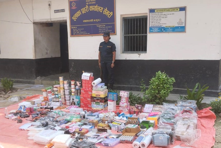नवलपरासी । जिल्ला प्रहरी कार्यालय नवलपरासी तथा मातहत प्रहरी इकाईहरुबाट खटिएको प्रहरी टोलीले भारतबाट नेपाल तर्फ अबैध रुपमा भन्सार छली ल्याउँदै गरेको अन्दाजी ७ लाख ५५ हजार ४१ रुपैंया बराबरको सामानहरु नियन्त्रणमा लिइ आवश्यक कारवाही प्रकृया अगाडी बढाएको छ।